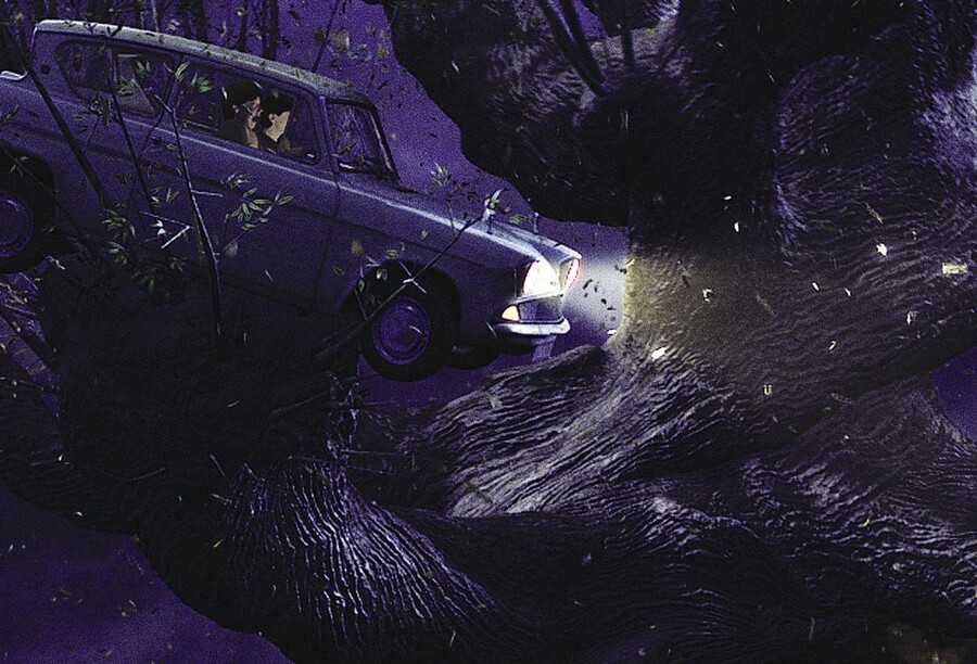 Другие сцены требовали сложного сочетания технологий. Для эпизодов, где лианы опутывают машину полицейского Карла, применялись как механические риги, встроенные в декорации, так и CG-лианы. Использовались резиновые лозы, с которыми актёры могли взаимодействовать напрямую. Автомобиль физически «сминали» на съёмочной площадке, чтобы получить реалистичную деформацию металла. Там же ILM добавляли цифровые лианы, невозможные в реальности: быстрорастущие плети, мгновенно прорастающие в стенах и потолке дома.