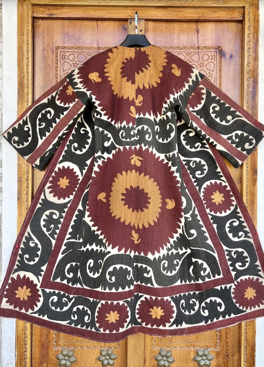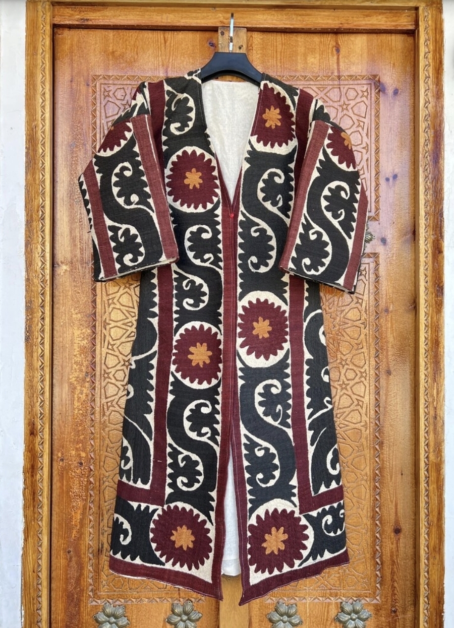 Удлиненное пальто из сюзане. Работа Мирана Халикова — ремесленника из Бухары
