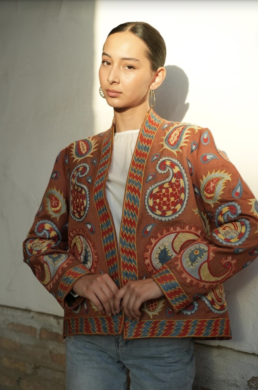 Куртка из адраса с традиционными узорами. Работа дизайнера Нигоры Хашимовой — основателя бренда NigoraHashimova