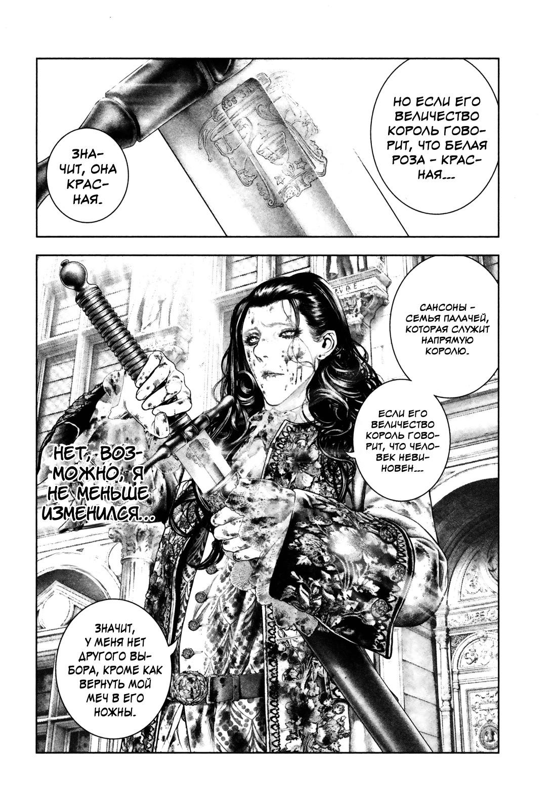 Как уже было сказано ранее, события манги разворачиваются во Франции XVIII века накануне и во время Французской революции. Сюжет следует за семьёй наследственных палачей Сансонов — прежде всего за сыном-палачом Шарлем-Анри Сансон и его младшей сестрой Мари-Жозеф. В начале истории Шарль-Анри, мягкий и чувствительный юноша, вынужден принять на себя роль палача после смерти отца: отец и бабка, властные главы семьи, принуждают его участвовать в жестоких казнях. Его сестра Мари-Жозеф постепенно приходит к осознанию своей тяготящей роли в сословии и, вопреки социальным запретам, жаждет стать участницей казней, разделяя судьбу брата. Первая часть («Безвинный») фокусируется на превращении Шарля-Анри в палача, вторая часть («Innocent Rouge») смещает внимание на Мари-Жозеф, ведя повествование к судьбоносному столкновению с монархией. В финальной трети манги действие концентрируется на событиях вокруг королевы Марии-Антуанетты и надвигающейся революции. Автор сознательно отступает от строгого историзма ради ярких образов и метафоричности: его творчество не про достоверность, оно про зрелищность и метафоры. Манга намеренно напоминает театральную постановку или оперу — сюжет построен не по линейному «учебному» принципу, а представляет собой череду резких сюжетных скачков, гротескных эпизодов и эмоциональных кульминаций. Автор изображает жизнь низших сословий (палачей), а также союз Австрии и Франции, похоть и чистую любовь, насилие и нежность, крики и жестокость, шик и грязные улочки.