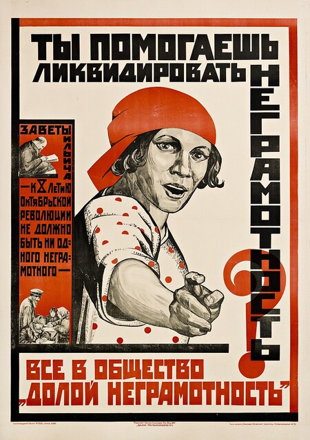 Образовательные плакаты этого периода характеризуются призывами к ликвидации неграмотности, искоренению вредных привычек и ведению спортивного образа жизни.