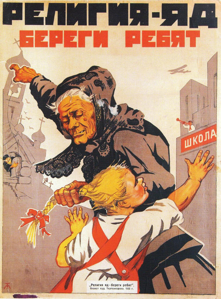 Представители духовенства также были отнесены к категории врагов государства. Антирелигиозные плакаты вкупе с прессой, газетой «Безбожник» и журналом «Безбожник у станка», формировали негативное отношение к религии и дополняли текст сатирическими изображениями.