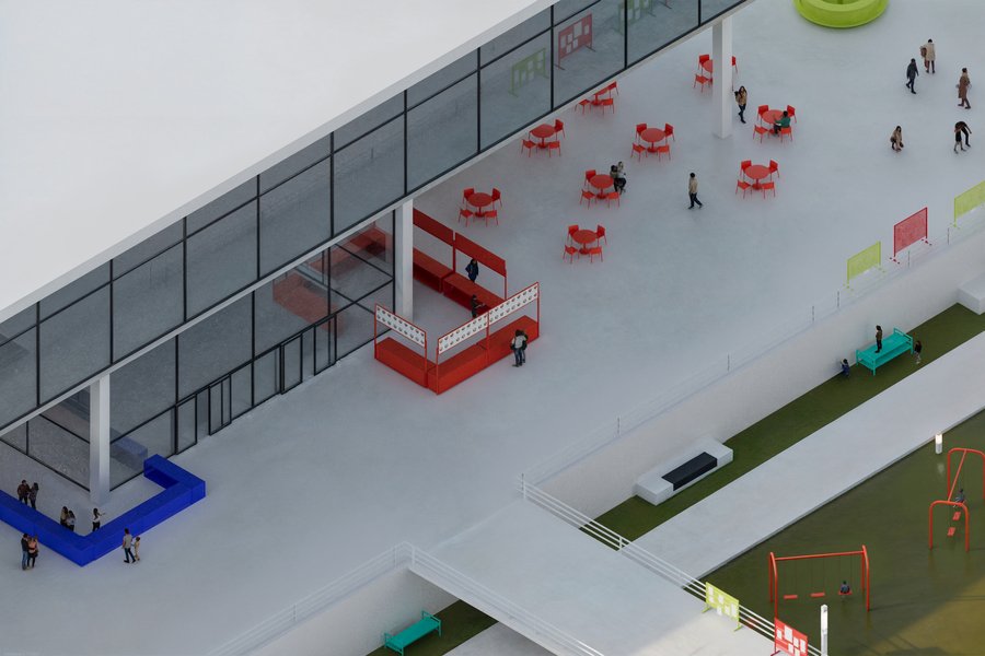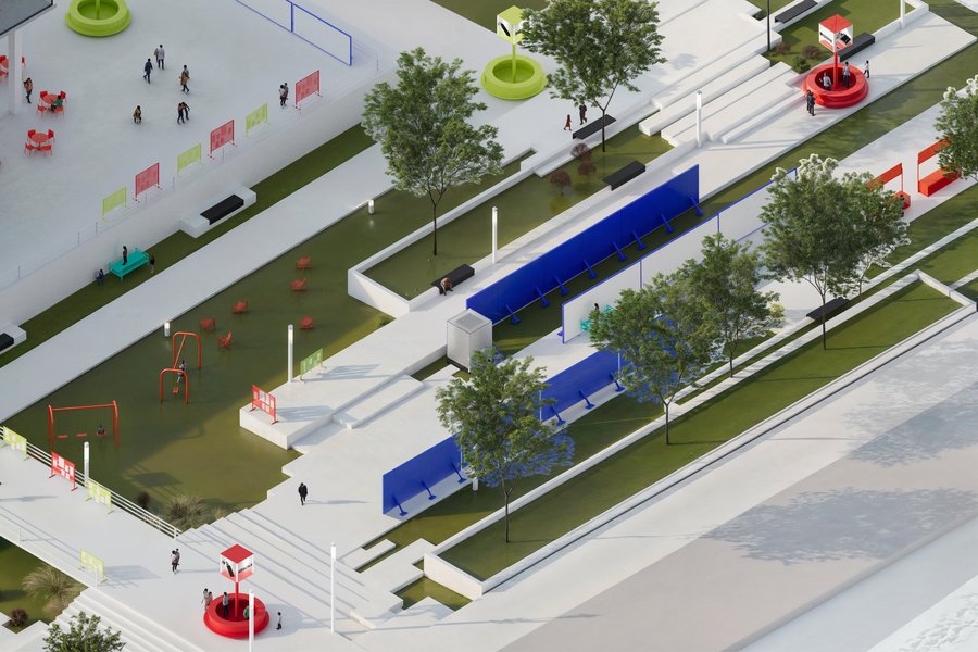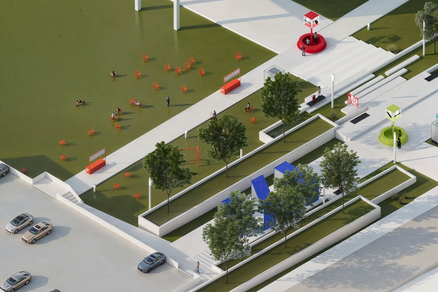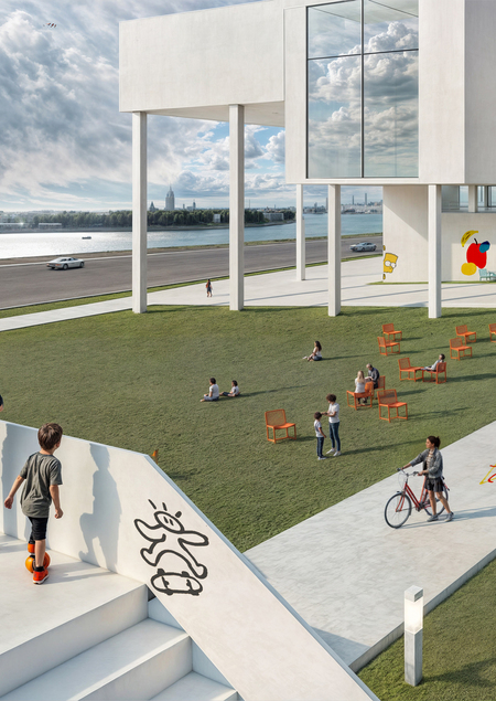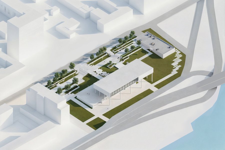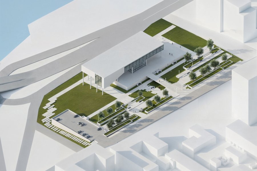 Визуальный стиль благоустройства напрямую продолжает архитектуру музея за счет прямолинейных форм и повторяющихся горизонталей