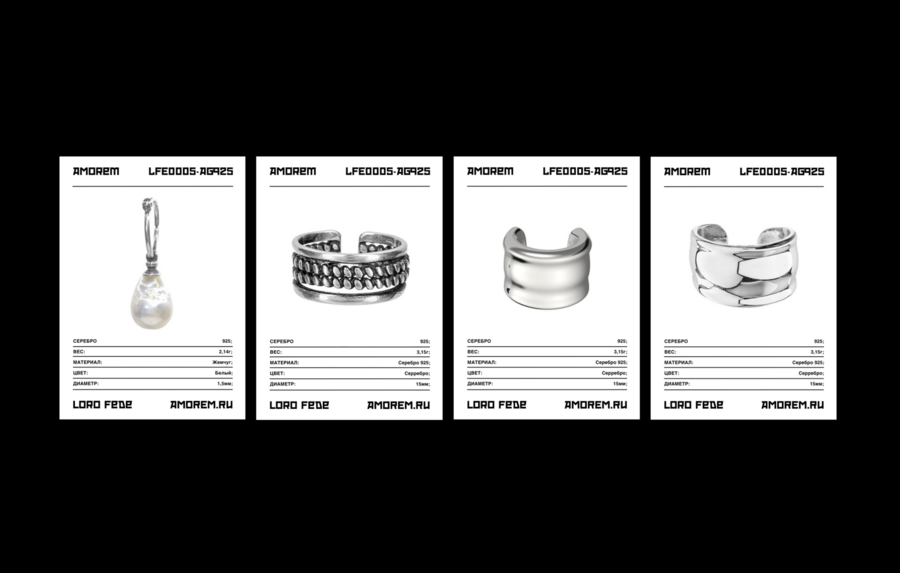 «AMOREM» — это существующий ювелирный бренд, имеющий свой онлайн и офлайн магазин в Москве. «AMOREM» создан для тех, кто ценит свою индивидуальность и не хочет быть частью стереотипов. Поддерживает идею, что покупки не должны быть сделаны для других людей или по социальным причинам. Ребрендинг связан с устаревшим дизайном.