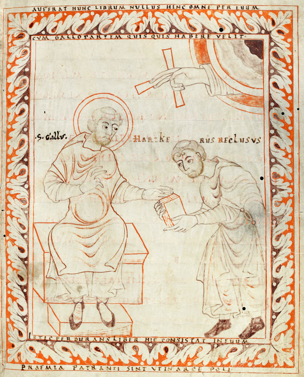 Слева: Титульная страница антифонария Харткера (Санкт-Галлен, 990-1000 гг.) [2] Справа: Страница итальянского антифонария. 1378. Библиотека кафедрального собора (Монца) [3]