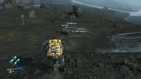 Скриншот из Death Stranding. Главный герой, Сэм Портер Бриджес (слева)