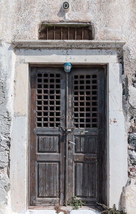 Door in Pirgos Kallistis, Santorini, Greece // Wikimedia URL: [https://commons.wikimedia.org/wiki/Category:Old_doors_in_Greece#/media/File: Santorin_(GR), Pirgos_Kallistis--2017--2908.jpg](https://commons.wikimedia.org/wiki/Category:Old_doors_in_Greece#/media/File: Santorin(GR), Pirgos_Kallistis--2017--_2908.jpg) (дата обращения: 23.11.2024).