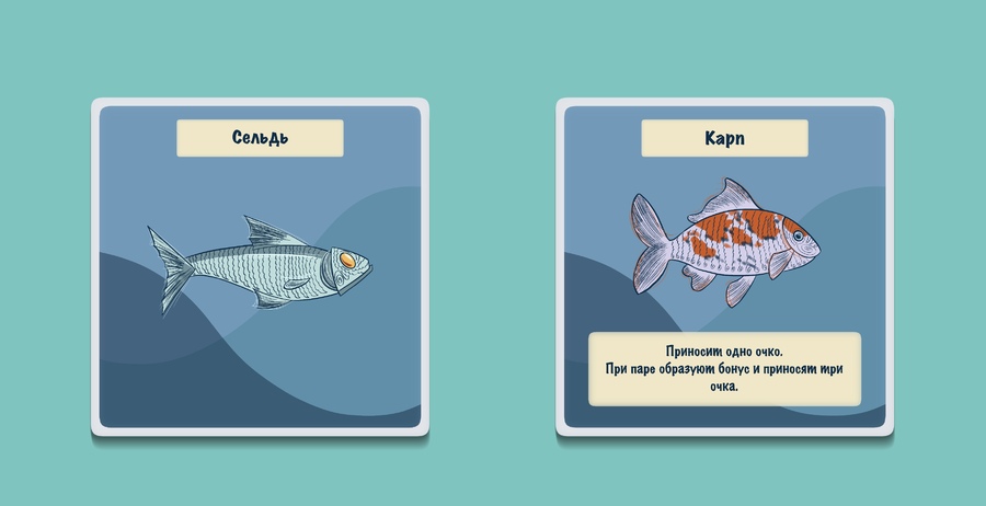 Сельдь принесет тебе 1 очко улова, а карпы при паре образуют бонус и приносят 3 очка.