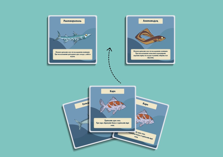Съеденные мутантом карты рыб переворачиваются рубашкой вверх.