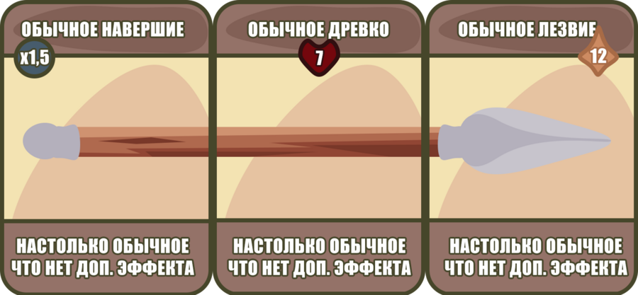 В начале игры, кузнецы берут в руку по 2 карты каждого элемента оружия. Создавая лучшее возможное оружие!