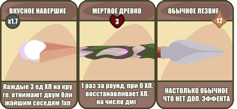 1. Разложите карты по колодам лезвий, древков, наверший и врагов рубашкой вверх