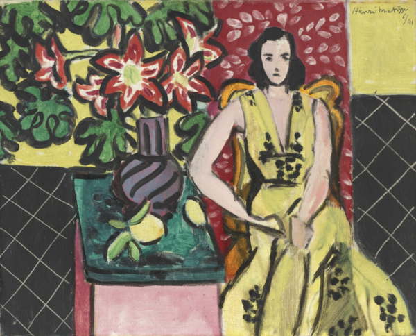 слева — «Портрет девушки Вет (Жанны) Гупиль», Поль Гоген, 1896 г.; справа — «Сидящая женщина с вазой из амариллиса», Анри Матисс, 1941 г.