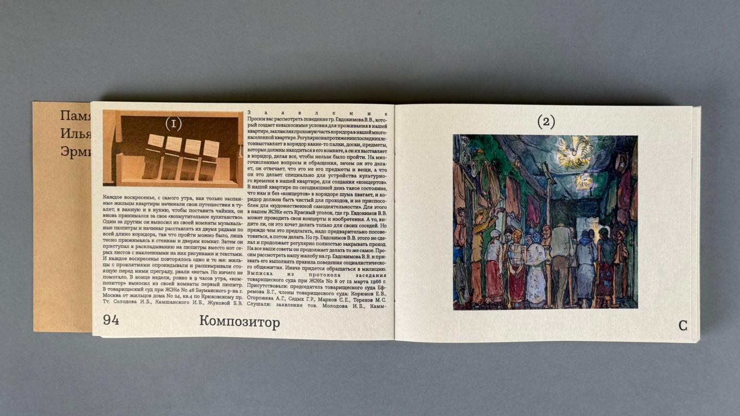 Изначально книга создавалась в качестве учебного проекта под руководством куратора Евгения Григорьева. Основные типографические константы были выбраны после лекции куратора выставки Марины Шульц, заведующей Отделом современного искусства Государственного Эрмитажа. Именно Марина Шульц спустя несколько месяцев обратила внимание на учебную работу и предложила её реализацию.