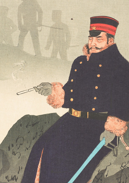 Особенно меня поразила эта гравюра, на ней изображена вся суть исследования, японский командир в униформе европейского образца, в руках сабля, а на спине катана
