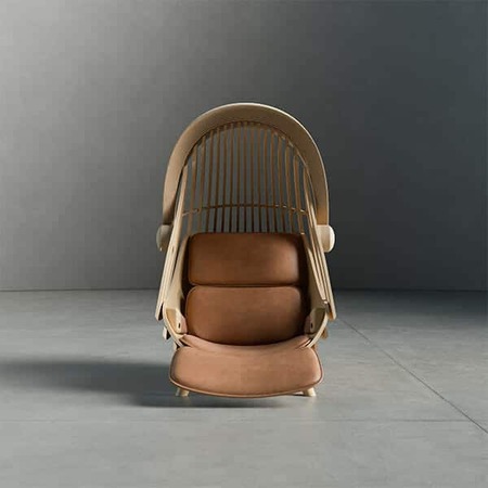 Подвесное кресло Nanna & Jørgen Ditzel формирует мягкую овальную оболочку, которая окружает сидящего со всех сторон. Благодаря подвесной конструкции пользователь ощущает лёгкое покачивание и визуальное отделение от окружающего пространства. По принципу приватности оно напоминает закрытые гнездовые камеры — компактные, округлые и слегка утопленные внутрь. Кресло предлагает индивидуальную тактильную и визуальную зону, не разрывая связь с внешним миром.