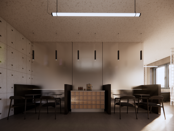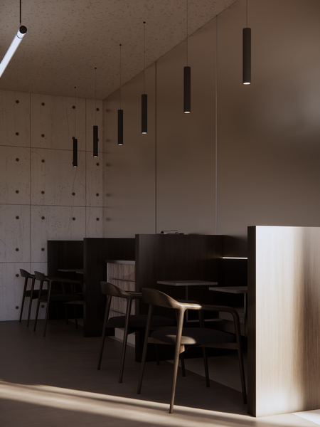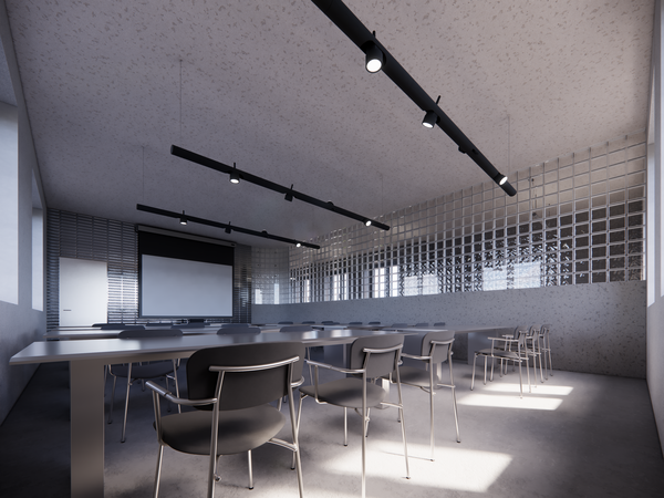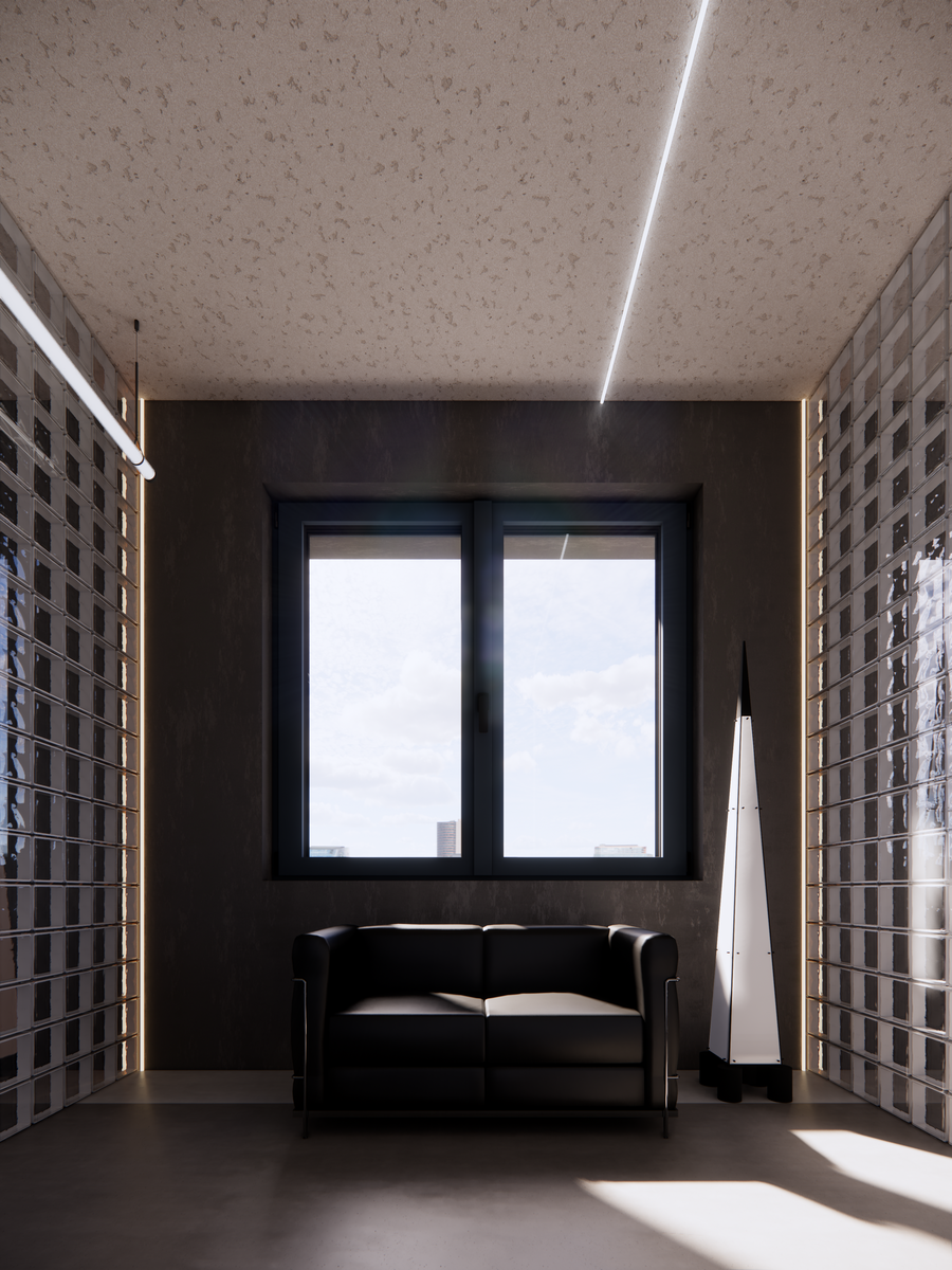 Создавая интерьер учебного кластера, главной моей целью стало нахождение такого стиля, который бы не отвлекал от главной задачи студентов — учебы. По моей концепции, в нем должна сочетаться строгость и холод в материалах и цветовой гамме, балансирующие с нестандартной формой мебели и мягким светом, теплыми подсветками.