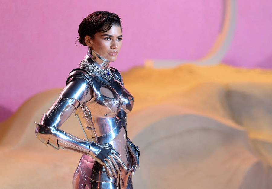 Зендая в металлическом костюме от Mugler (2024)