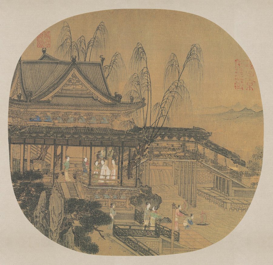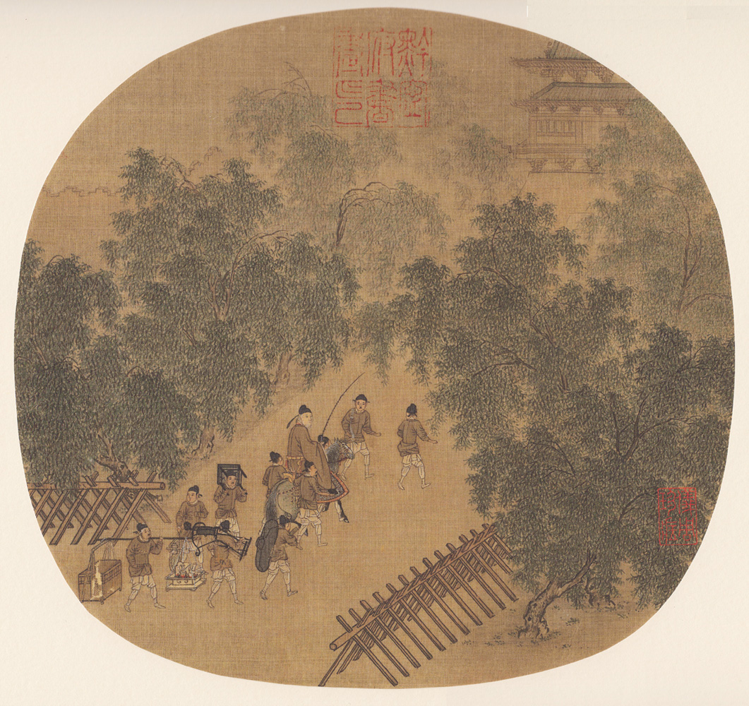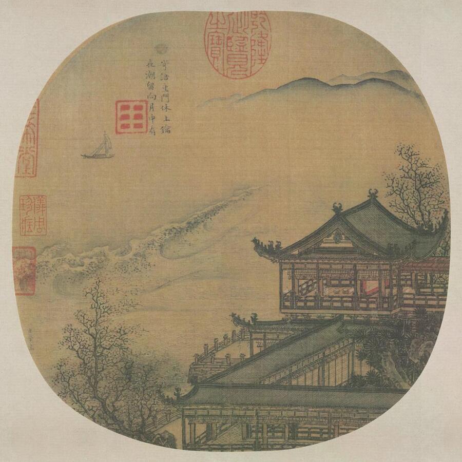«Возвращение домой с весенней прогулки», Ма Юань. «В поисках прохлады в воде», Ли Сун. «Приливная волна Ханчжоу в лунном свете», Ли Сун. «Ожидание гостей при свете лампы» Ма Лин, Династия Сун.