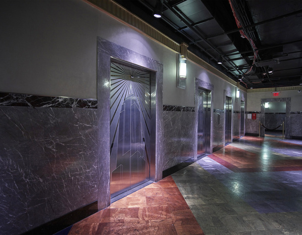 Отреставрированная лифтовая зона в Эмпайр-стейт-билдинг [Empire State Building], Уильям Фредерик Лэмб [архитектурная фирма Shreve, Lamb & Harmon], Нью-Йорк, 1931 г.