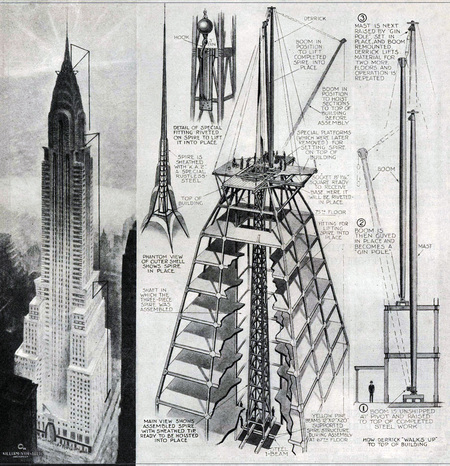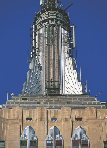 Механизм шпиля демонстрирует инженерное мастерство эпохи ар‑деко и использование передовых технологий того времени. Таким образом, классическая устремленность ввысь (как у готического собора) получает не просто новое инженерное решение, но и новое визуальное воплощение — обтекаемое, геометрически выверенное, техногенное.