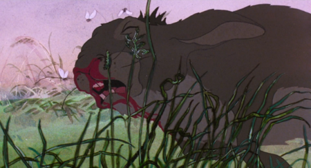 Множество разовых криповых сцен, выбивающихся из общего тона мультфильмов, можно найти, как это не странно, в ранних проектах студии Дисней. Розовые слоны из «Дамбо» (1941) доказывают, что единственный хоррор-эпизод в сюжете может стать самым запоминающимся и получить статус культового. Если в «Вонке» психоделия была использована как переход между настроениями, «мирами», то здесь парад слонов — низшая точка беспомощности главного героя. Маленький Дамбо теряется в большом и недружелюбном мире — распространённый детский страх.