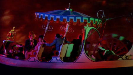 Такова, к примеру, сцена в туннеле в фильма «Вилли Вонка и шоколадная фабрика» (1971). Психоделический эпизод является переходным для истории: от милой сказки к серии эпизодов, в которых дети пропадают один за одним. Сцена дополняет магический образ Вонки, как безумного волшебника. К тому же, в конце оказывается, что всё путешествие с золотыми билетами было испытанием (Вилли Вонка искал себе преемника), а потому сегмент в туннеле был одной из его частей.