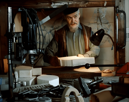 Например, лилипут рассказывает об исчезновении космонавта в сценическом гриме, а сцены с ним перемешиваются со съёмками его репетиции. Или кадры со скульптором-инженером в его мастерской, идушие вперемешку с его чертежами.
