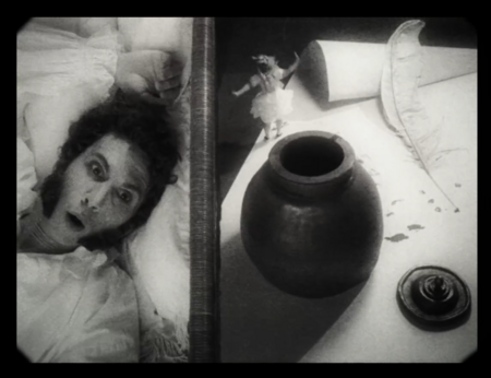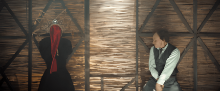 На протяжении всего фильма всплывают такие несуществующие, нарочито театральные воспоминания, где цирк в огне, циркачи выглядят как жуткие бандиты, а образ матери показан максимально вульгарно и неприятно, отражая чувства главного героя.