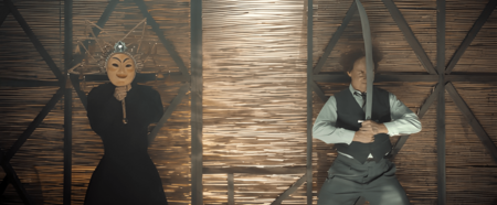 В фильме «Последняя „Милая Болгария“» (2021) используются маски японского традиционного театра кабуки. Это создаёт эффект экзотичности, контрастирует с пейзажами и нарративами Алма-Аты и, как следствие, антагонизирует персонажей, носящих маски, подчёркивая, что их подозревает главный герой.