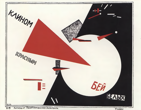 «Клином красным бей белых» / Э. Лисицкий / 1920, «Выполним план великих работ» / Г. Клуцис / 1930