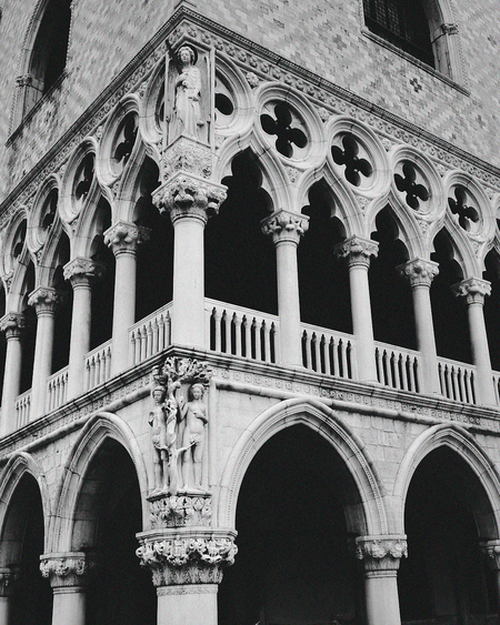 Другой важный проект — это Площадь Святого Марка в Венеции. Арочная галерея Прокураций обрамляет площадь подобно раскрытым объятиям. Непрерывный ряд стрельчатых и полуциркульных арок создает защищенный пешеходный маршрут, соединяющий собор, дворец Дожей и общественные пространства.