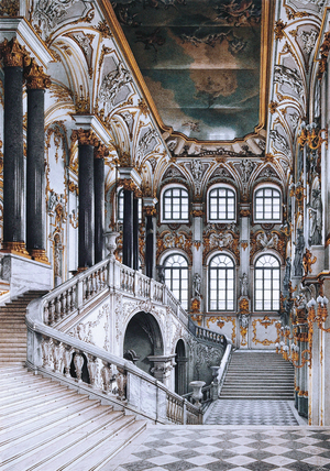Граф Бартоломео Франческо Растрелли, Иорданская лестница — Зимний дворец, 1754-62; восстановлена архитектором В. П. Стасовым, 1837-39