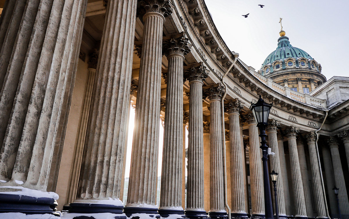 Архитектор А. Н. Воронихин, вдохновляясь собором Святого Петра в Риме, создал не просто фасад, а мощный жест, охватывающий городское пространство. Эллиптическая форма площади и радиальная схема размещения колонн создают эффект визуальной перспективы, где собор кажется то приближающимся, то удаляющимся, подчиняя кинетический опыт верующих высшему замыслу.