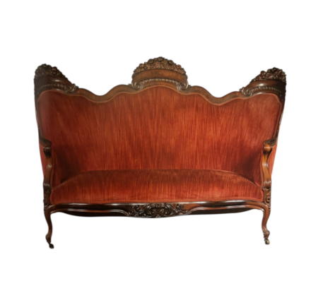 На первом фото форма этого канапе предполагает позицию сидящих лицом друг к другу. Такой тип диванчиков еще называется «для влюбленных», поскольку он предполагает удобное расположение двух человек полулежа, близко друг к другу. В современной интерпретации сложно найти похожую форму мягкой мебели с именно таким назначением. Вместо этого диваны чаще всего предполагают размещение ровно сидя трех и более людей одновременно. Такая посадка направлена больше всего на просмотр телевизора, то есть располагает именно к использованию гаджетов, а не общению друг с другом.