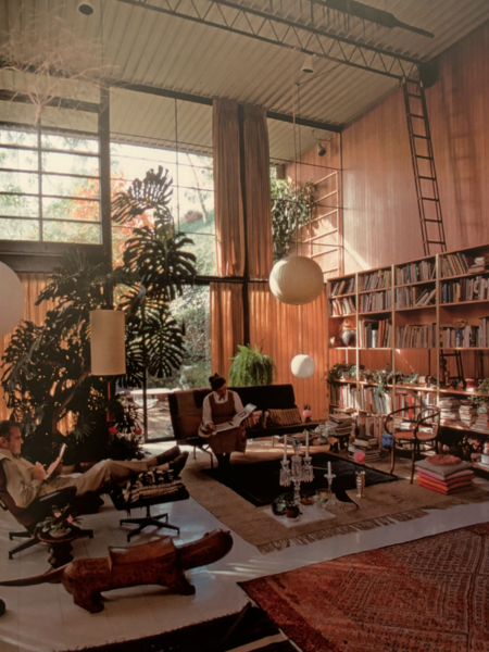 Дом Чарльза и Рей Имз. Фото Арнольда Ньюмана, ок 1950 г. Книжная полка дизайна Deniz Aktay, 2025.