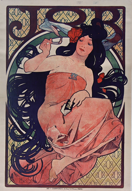 В плакатном искусстве это было особенно заметно. Плакаты Альфонса Мухи строились на сложной декоративной композиции, где фигура женщины окружена орнаментами, узорами и буквицами.