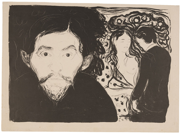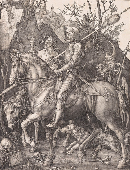 Альбрехт Дюрер, Рыцарь, смерть и дьявол, 16 в. / Эдвард Мунк, Ревность I, 1896 г.