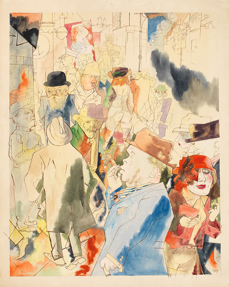 Жорж Сера, Прогуливающаяся женщина, ок. 1882 г. / Джордж Гросс, Уличный пейзаж, 20 в.
