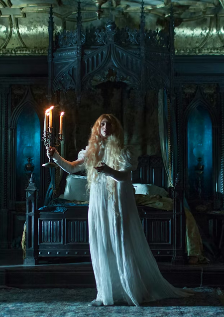 Отдельно хочется отметить мотив свечей: он присутствует во многих моментах кино, как более теплых, так и страшных. В начале фильма, когда Эдит еще ничего не знает о Томасе и его особняке, он предлагает ей танец со свечой в руке. Позже свеча превращается в подсвечник, с которым героиня исследует жуткое поместье.