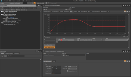 Реализация звука в игровых движках осуществляется через специализированные аудиодвижки, такие как Wwise (Audiokinetic), FMOD и SoLoud, интегрируемые в Unity, Unreal Engine или Godot. Эти системы поддерживают 1D/2D/3D-позиционирование источников звука, где координаты слушателя и эмиттера определяют громкость, панорамирование и эффекты затухания по моделям Min/Max Distance.