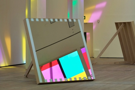 Позднее Бюрен переосмыслит архитектурную работу Райта, поместив в него два объекта: один подчиняется оригинальной структуре, другой ей противоречит.