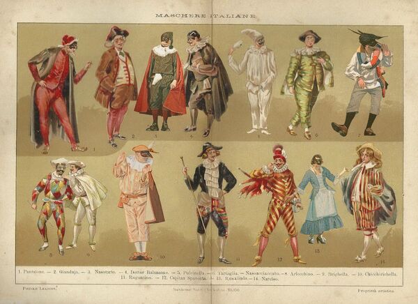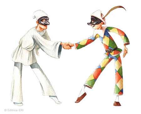 Маски Комедии дель арте: Арлекин, Коломбина, Пьеро.