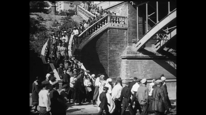 Таким образом, каждый период рисует и наделяет толпу людей совершенно разными чертами. В блоке 1920-х годов анализируются эпизоды из «Броненосца Потёмкина» и «Человека с киноаппаратом». У Эйзенштейна масса выступает как революционный субъект: она имеет почти телесную энергию, ритм, способность к поступку. Через чередование крупных и дальних планов формируется диалектика: индивидуальный жест (например, фигура Вакулинчука) запускает движение массы, но затем растворяется в её общем импульсе. В «Человеке с киноаппаратом» масса становится городской формой жизни: не идеологической, а механической, ритмической, многослойной. Здесь индивидуальное почти исчезает — на его место приходит взгляд оператора, который наблюдает массу как структуру.