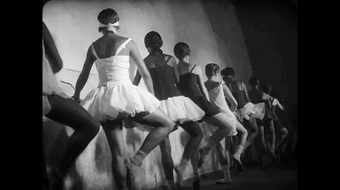 Ритмичность, фронтальность, синхронные движения — визуальные приёмы, которые подчёркивают исчезновение индивидуального жеста.