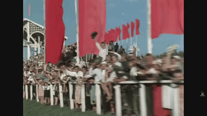 Композиции кадров подчёркивают идеологическую вертикаль: масса людей поддерживает лидера и существует как его визуальное продолжение. Это бесконечный коридор людей, замерших в жесте приветствия. Их синхронность подчёркивает: индивид исчезает, возникает ритуальное тело народа. Хореография здесь жестко контролируемая, идеологически выстроенная.