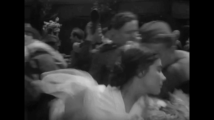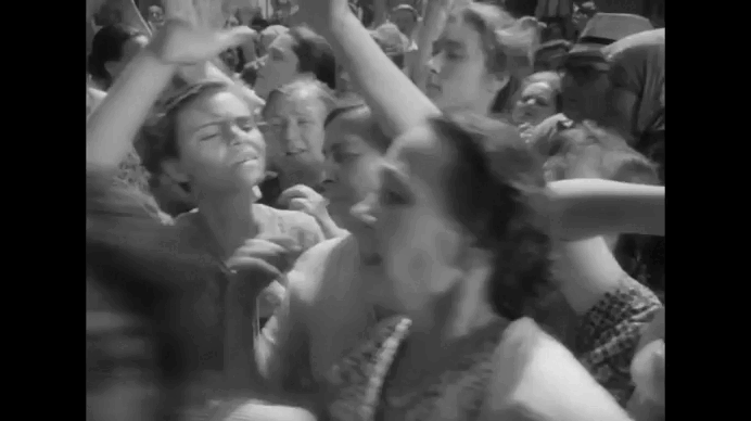 Индивидуальный нарратив Марион исчезает, а затем её личная драма поглощается коллективным актом, что подчёркивается двойной экспозицией лица героини с кадрами идеологически упорядоченной, марширующей толпы.