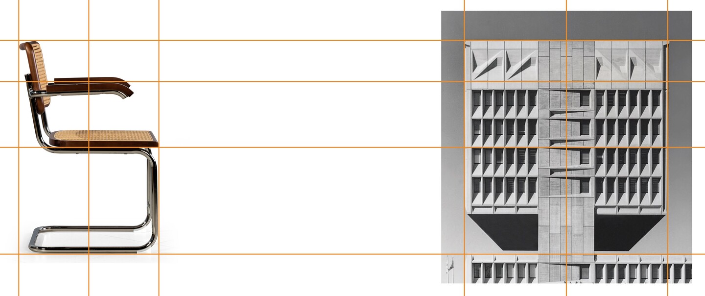 1 — Кресло «Cesca S64» | 1970 год [26] 2 — Здание Pirelli Tire Building | США | 1970 год [27] 3 — Кресло «Cesca S64» | 1970 год [28] 4 — фрагменты зданий, построенных Марселем Брёйером [29-31]