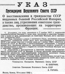 Указ Президиума Верховного Совета СССР от 14 июня 1946 года «О восстановлении в гражданстве СССР подданных бывшей Российской империи, а также лиц, утративших советское гражданство…»
