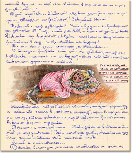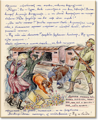 Тетрадь Е. А. Керсновской с собственными иллюстрациями, которая впоследствии послужила основой для мемуара «Сколько стоит человек».
