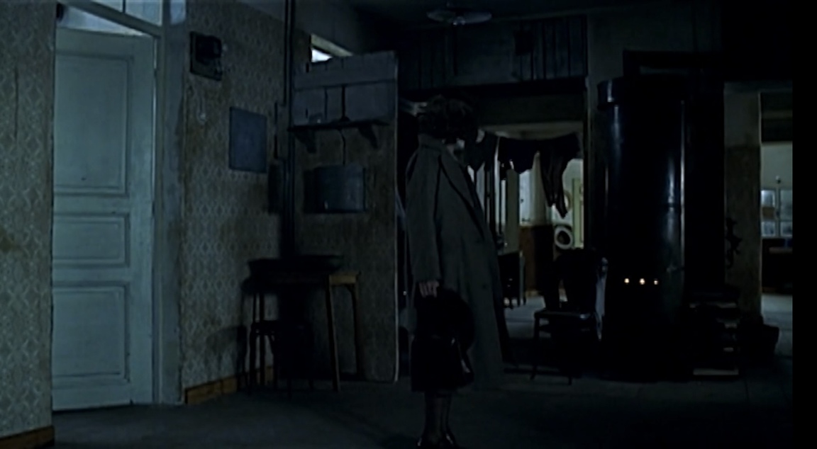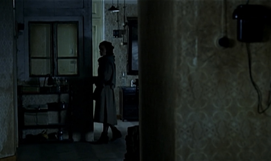 На выбранных мною кадрах я хочу показать то, как в фильме передана гнетущая атмосфера — темная, беспросветная квартира, которая поглощает все вокруг своей серостью. На следующих кадрах даже не видно, что по центру стоит Мари. Вся эта обстановка действительно напоминает тюрьму, но никак не дом.